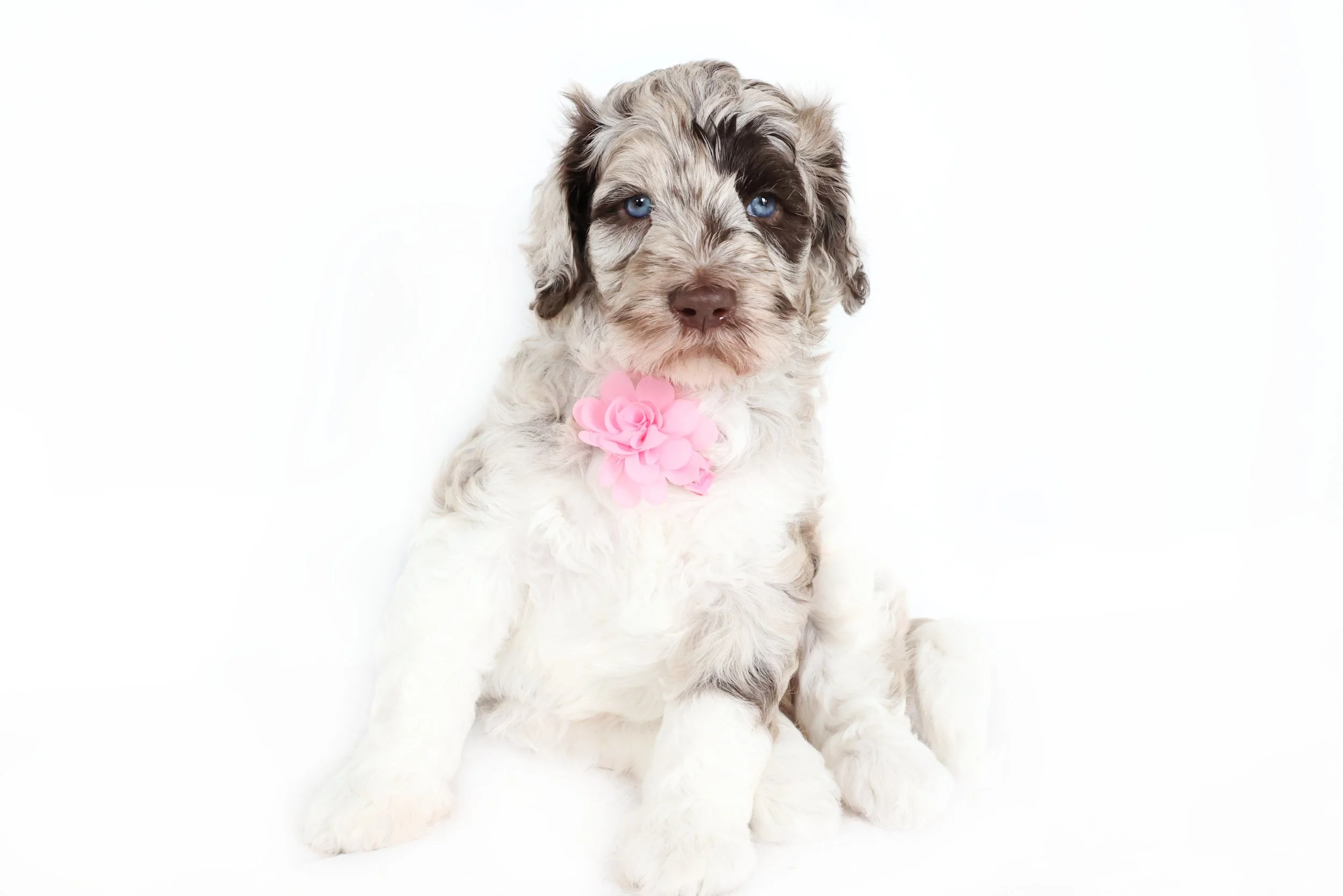 I am excited to see this little Dinky girl grow! She is a very dainty framed girl with her adorable wavy chocolate merle coat! We all need some chocolate in our lives, don’t you think!